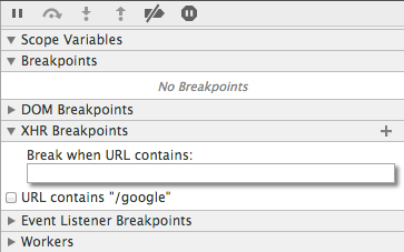 XHR断点或我称作的Ajax断点,也允许当一个预期Ajax请求创建时断开。