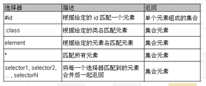 选择器是 jQuery 的根基, 在 jQuery 中, 对事件处理, 遍历 DOM 和 Ajax 操作都依赖于选择器