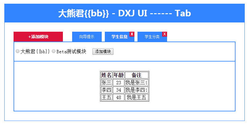 大熊君{{bb}} - DXJ UI ------ Tab