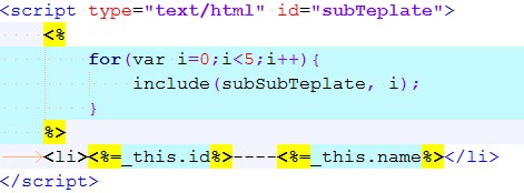可以看到,使用include的时候,可以使用子模板的时候,传入指定的数据集作为数据源,对于复杂的多层结构来说,能够很好的控制每个模板的数据结构。