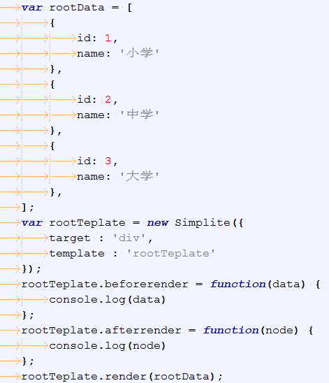 8:支持子模板使用Simplite.dataKey指定的字段访问传递过来的数据全集,默认值为"_this",对于数组、数字这样的数据集来说,使用Simplite.dataKey很容易拿到数据。