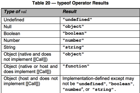 其中有一处需要注意,那就是typeof null == "object",按照ECMAScript 5.1标准,Null类型应该是个基本类型,为什么这里返回object呢?原因是这样的: