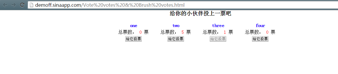 3.然后,模拟性的有人给three投了一票,点击three的按钮