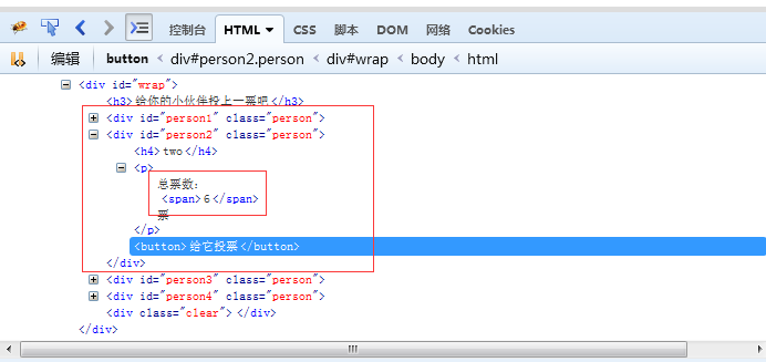 $("#person2>button").click().attr("disabled",false); //触发投票的事件click,投完后记得把投票权限拿回来