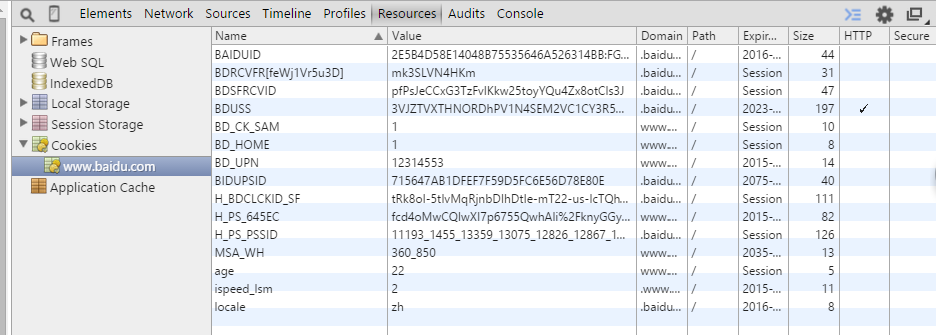 接着,打开Resources,就可以看到cookie中已经记录了相应的字段