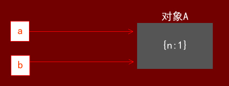 在这里a指向了一个对象{n:1}(我们姑且称它为对象A),b指向了a所指向的对象,也就是说,在这时候a和b都是指向对象A的: