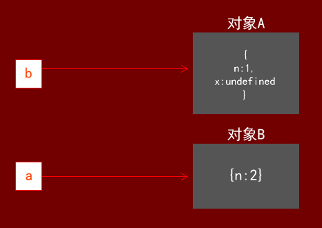 这时候发生了这个事情——a指向的对象{n:1}新增了属性x(虽然这个x是undefined的):