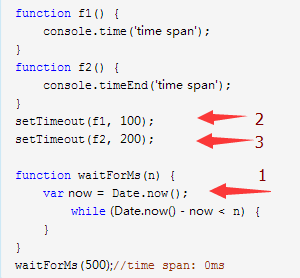 以上代码计算console.time('计时器');和console.timeEnd('计时器');之间的代码块所需要的事件。