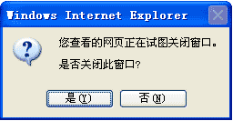 Window.close()这句脚本是用来关闭当前窗口,如果是在window.open的窗口中执行Window.close(),将会很顺利地将窗口关闭,但如果是在一非window.open打开的窗口中执行Window.close(),将会弹出一个提示窗口,如下:
