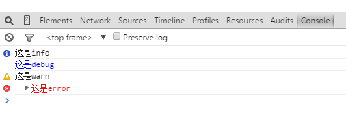 console对象的上面5种方法,都可以使用printf风格的占位符。不过,占位符的种类比较少,只支持字符(%s)、整数(%d或%i)、浮点数(%f)和对象(%o)四种。比如: