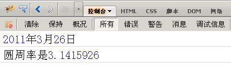 console.log( "%d年%d月%d日" , 2011,3,26 );