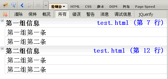 默认情况下,控制台只显示Javascript错误。如果选中Javascript警告、CSS错误、XML错误都送上,则相关的提示信息都会显示。