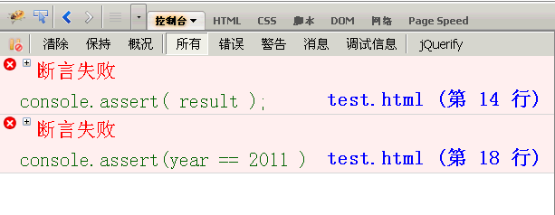 六、console.assert();(用来判断一个表达式或变量是否为真。如果结果为否,则在控制台输出一条相应信息,并且抛出一个异常)