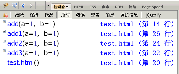 运行后,会显示add()的调用轨迹,从上到下依次为add()、add1()、add2()、add3()