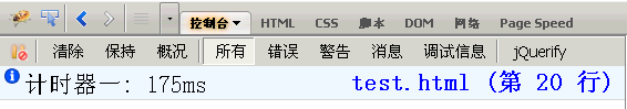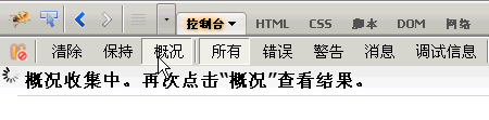除了使用 “console.profile();”方法,firebug还提供了一个"概况"(Profiler)按钮。第一次点击该按钮,"性能分析"开始,你可以对网页进行某种操作(比如ajax操作),然后第二次点击该按钮,"性能分析"结束,该操作引发的所有运算就会进行性能分析。