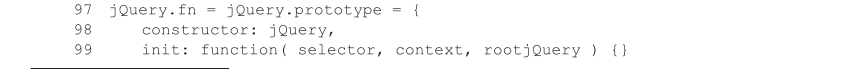 constructor: jQuery, // Start with an empty selector selector: "", // The current version of jQuery being used jquery: "1.7.1", // The default length of a jQuery object is 0 length: 0,
