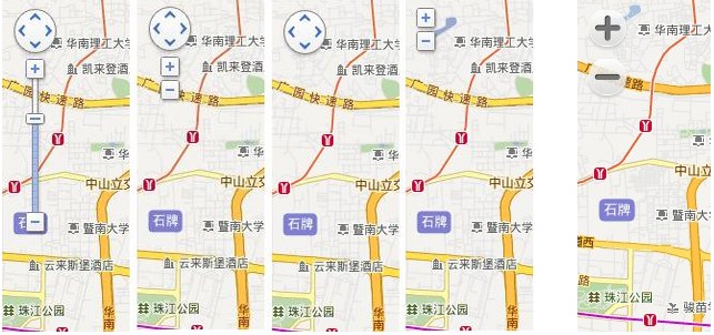 上图前4个为PC端平移缩放控件样式,最后一个为移动端缩放控件样式。