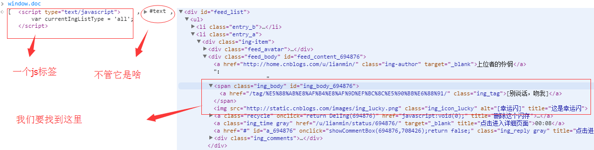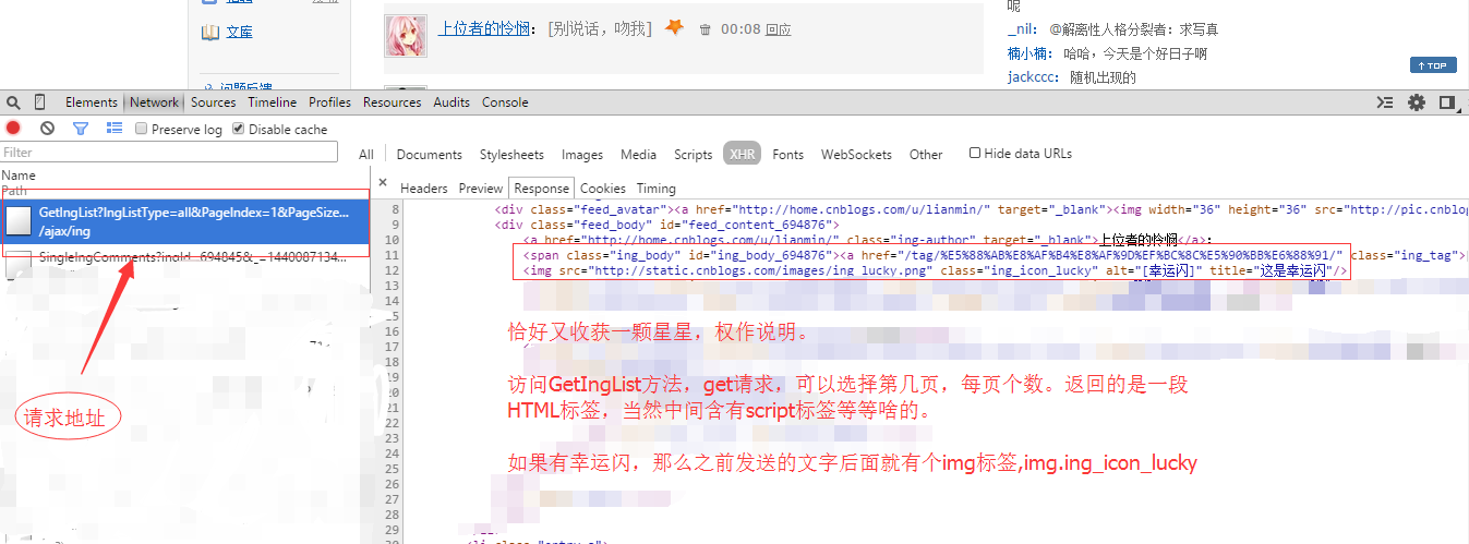 返回的是一段html代码,使用$(result)在控制台可以看到是分为3部分,我们需要找到刚刚发送的部分,并判断是否有幸运闪。我这里只选择获取前3条来判断,如果有3个人以上刚刚跟我一起刷闪存,那我就找不到啦...所以可以让每页多一点数量。