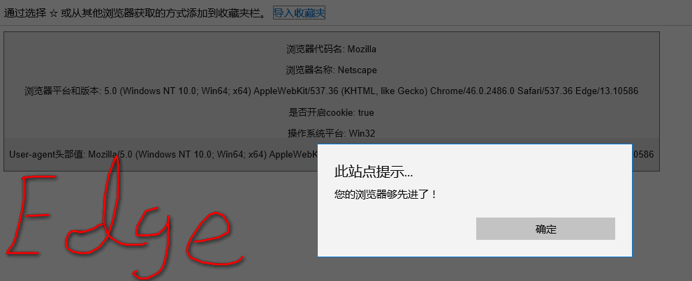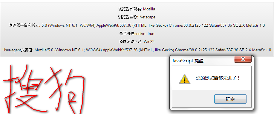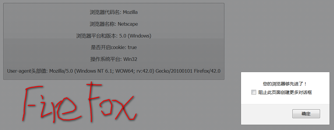 { alert("您的浏览器够先进了!"); }
