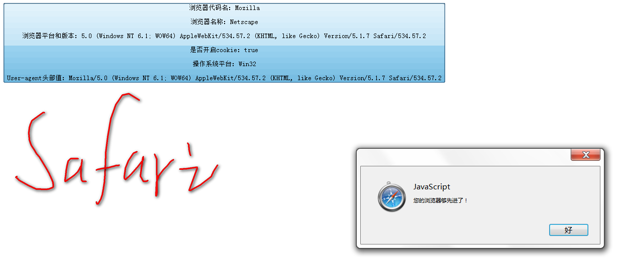 Window有navigator对象让我们得知浏览器的全部信息.我们可以利用一系列的API函数得知浏览器的信息.