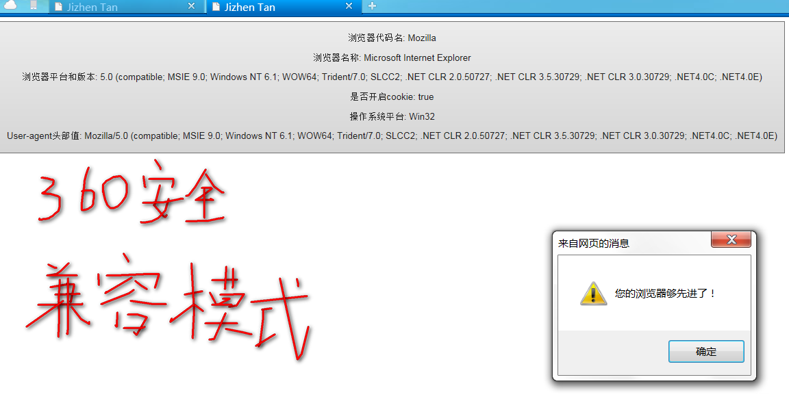 360安全浏览器的兼容模式,用的是IE的Trident内核