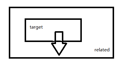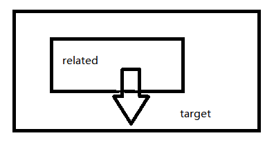 其中!jQuery.contains( target, related )表示related在target外面。我们使用图例来解释