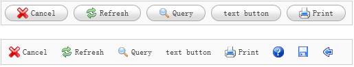 <div style="padding:5px;background:#fafafa;width:500px;border:1px solid #ccc"> <a href="#" class="easyui-linkbutton" iconCls="icon-cancel">Cancel</a> <a href="#" class="easyui-linkbutton" iconCls="icon-reload">Refresh</a> <a href="#" class="easyui-linkbutton" iconCls="icon-search">Query</a> <a href="#" class="easyui-linkbutton">text button</a> <a href="#" class="easyui-linkbutton" iconCls="icon-print">Print</a> </div> <div style="padding:5px;background:#fafafa;width:500px;border:1px solid #ccc"> <a href="#" class="easyui-linkbutton" plain="true" iconCls="icon-cancel">Cancel</a> <a href="#" class="easyui-linkbutton" plain="true" iconCls="icon-reload">Refresh</a> <a href="#" class="easyui-linkbutton" plain="true" iconCls="icon-search">Query</a> <a href="#" class="easyui-linkbutton" plain="true">text button</a> <a href="#" class="easyui-linkbutton" plain="true" iconCls="icon-print">Print</a> <a href="#" class="easyui-linkbutton" plain="true" iconCls="icon-help"></a> <a href="#" class="easyui-linkbutton" plain="true" iconCls="icon-save"></a> <a href="#" class="easyui-linkbutton" plain="true" iconCls="icon-back"></a> </div>