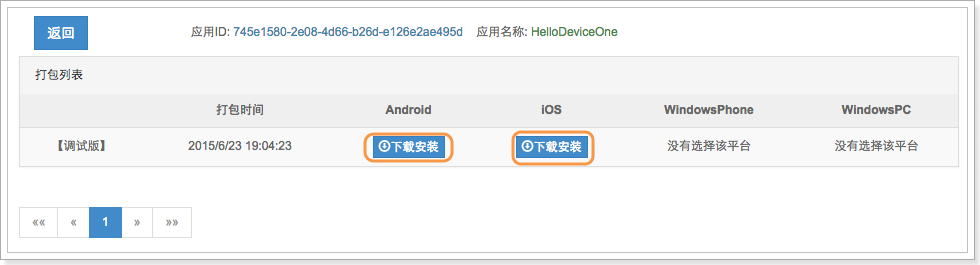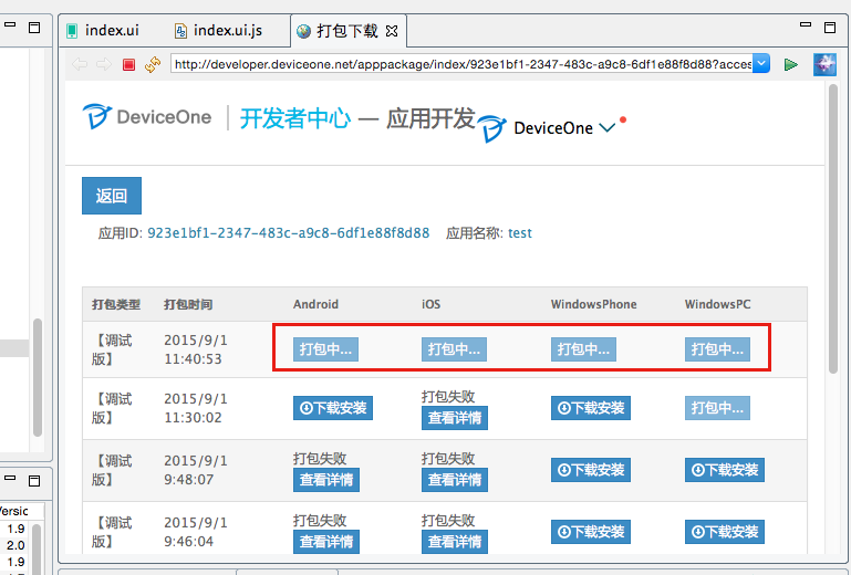 应用开发完后通过云端的打包服务即可将程序打成一个正式的安装包,有自己的图标,名称,签名等等,可以上传官方的Appstore,可以给最终用户下载使用。只需点击设计器中的“Build Single Version”按钮,最后安装包在下载页面下载即可。