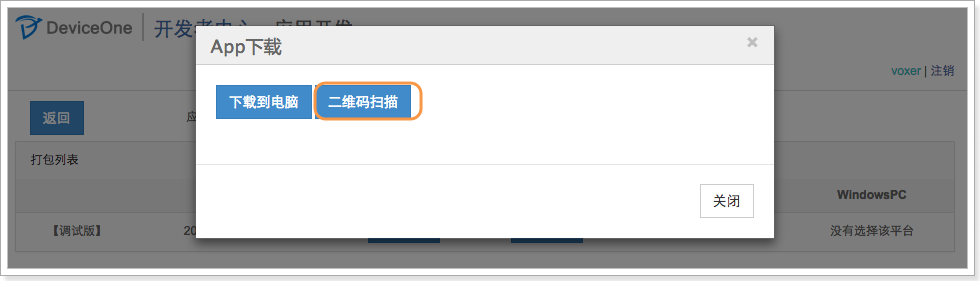 只需要几分钟,”打包中…” 就会完成,变成“下载安装”,点击后,你可以选择二维码安装或者下载文件到电脑上然后通过工具来安装到手机上。