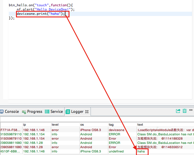 目前还不支持单步调试。目前支持alert,toast方式调试和deviceone.print调试。其中print调试可以实时把打印的数据显示在设计器的”调试日志“,但是需要确保调试终端的”显示日志“勾选上。