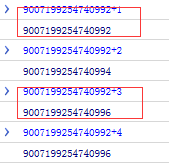 9007199254740992 >> 10000000000000...000 // 共计 53 个 0 9007199254740992 + 1 >> 10000000000000...001 // 中间 52 个 0 9007199254740992 + 2 >> 10000000000000...010 // 中间 51 个 0