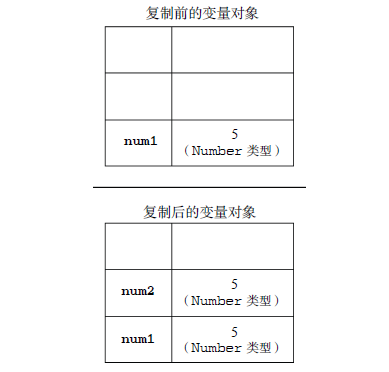 从一个变量向另一个变量复制基本类型的值,我们会在变量对象上重新创建一个新值,然后把该值复制到新变量分配的位置上。这俩个值是完全对立的,对俩个变量进行其他操作是互不影响的。它们应该是保存在栈内存中,如下图所示: