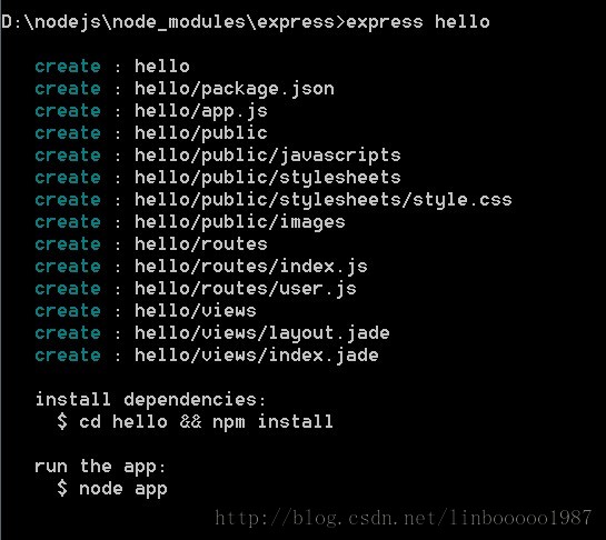 键入:express myapp (myapp是随意起的工程名称)