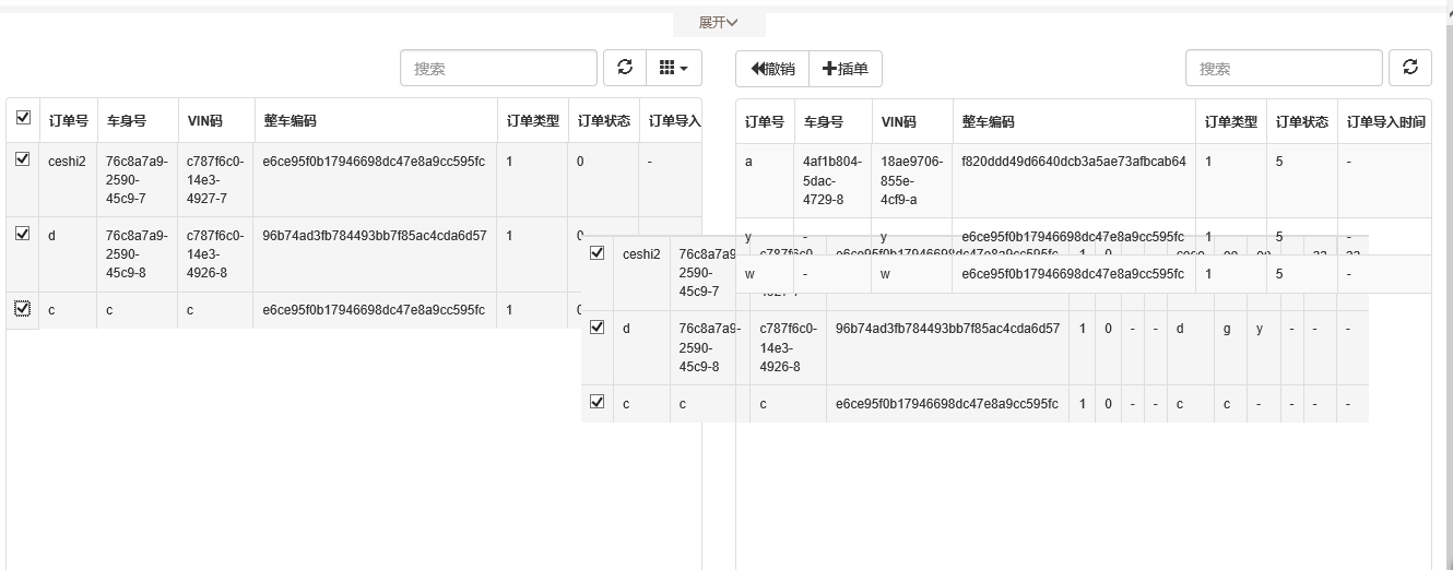 (2)在开始拖拽前,保存两边表格的数据,用于还原的操作。