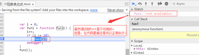 既然,fun2在外面不能调用为什么在函数内部能调用?虽然在debugger还是得不到fun1。