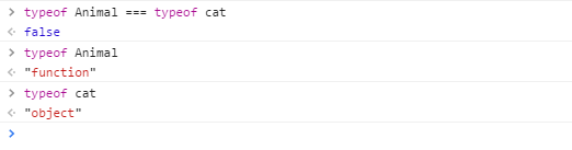 总结一下,javascript的new关键字主要的作用是继承,上面例子中,cat对象在产生时便继承了Animal中定义的方法和属性,因此cat不是Animal的实例而是其子类(不严谨的说法)。可能有人还会想:cat既然是new出来的,那cat和Animal应该是同类型的。我认为既然是父类和子类的关系,那就不可能是同类型,不信,你看: