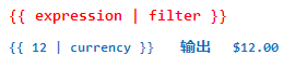 {{ expression | filter }} 即 {{ 表达式 | 过滤器 }}