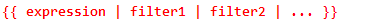 {{ expression | filter1 | filter2 | ... }}