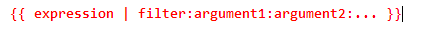 {{ expression | filter:argument1:argument2:... }}