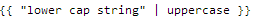 {{ "lower cap string" | uppercase }}