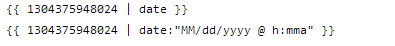 {{ 1304375948024 | date:"MM/dd/yyyy @ h:mma" }}