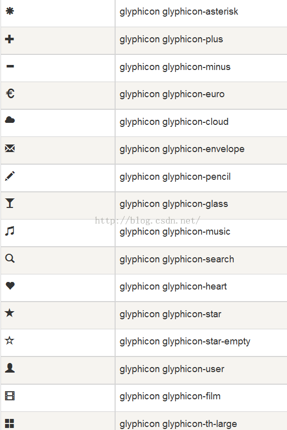 Bootstrap提供了200个字体图标,每个图标对应一个class,在使用时,我们只需要包含glyphicon和对应的class即可。
