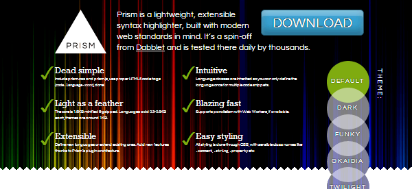 Prism 是一个轻量级,可扩展的语法着色工具,符合 Web 标准。它压缩后只有 1.5KB,并且非常易于使用,只需要插入一个 CSS 和 JS 文件即可。