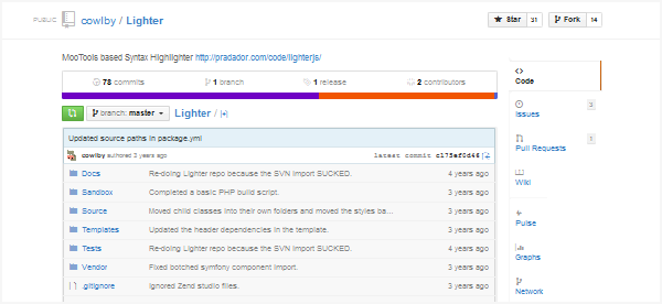 Lighter.js是一款免费的MooTools代码高亮插件。使用lighter.js简单到只需要在你的页面中添加一段简单的脚本就OK了。