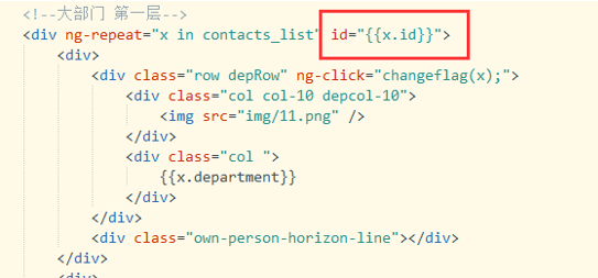 <div ng-repeat="x in contacts_list" id="{{x.id}}">