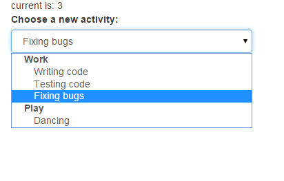 <select ng-model = "engineer.currentActivity" class="form-control" ng-options = "a.name group by a.type for a in activities" > </select >