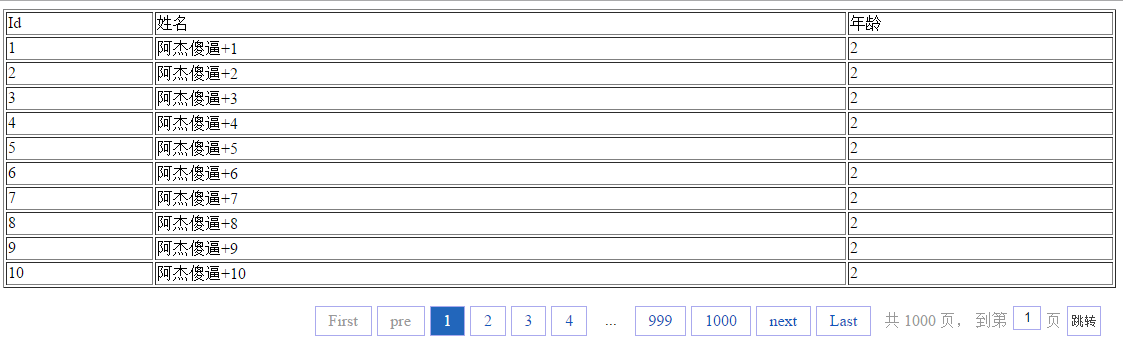 最后我们可以看下出来的效果:(表格样式没有设置比较丑,分页样式自己也可以根据需要修改css文件)