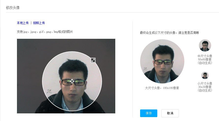 这是在AngularJs中成功实现调用摄像头拍照并截图上传的例图:
