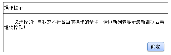 Alert('您选择的订单状态不符合当前操作的条件,请刷新列表显示最新数据后再继续操作!');