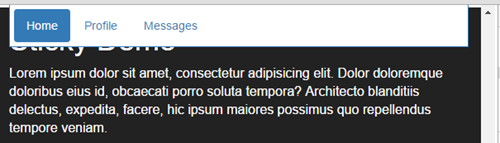 <div id="main-container" class="container-fluid"> <div class="row"> ... </div> ... </div> <div class="container-fluid sticky-wrapper"> <ul id="sticky" data-target="#main-container" class="sticky nav nav-pills"> <li role="presentation" class="active"><a href="#">Home</a></li> <li role="presentation"><a href="#">Profile</a></li> <li role="presentation"><a href="#">Messages</a></li> </ul> </div>